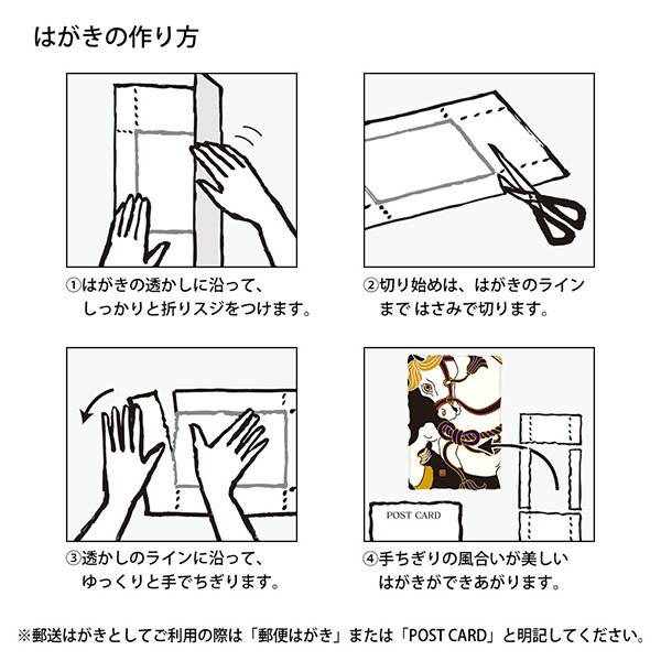 Appréciez la texture du papier washi de haute qualité, les motifs audacieux, les couleurs simples et l’éclat délicat de la sérigraphie dorée utilisée dans certaines régions. Ce petit format peut être utilisé comme carte postale déchirée à la main après l’avoir exposée.