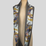 Écharpe infinity XL: une face est en laine à carreaux et l’autre face est en coton imprimé avec des grues japonaises “Tsuru”.