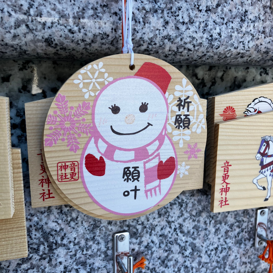 Ema ronde bonhomme de neige à dessiner, rose – Hokkaido