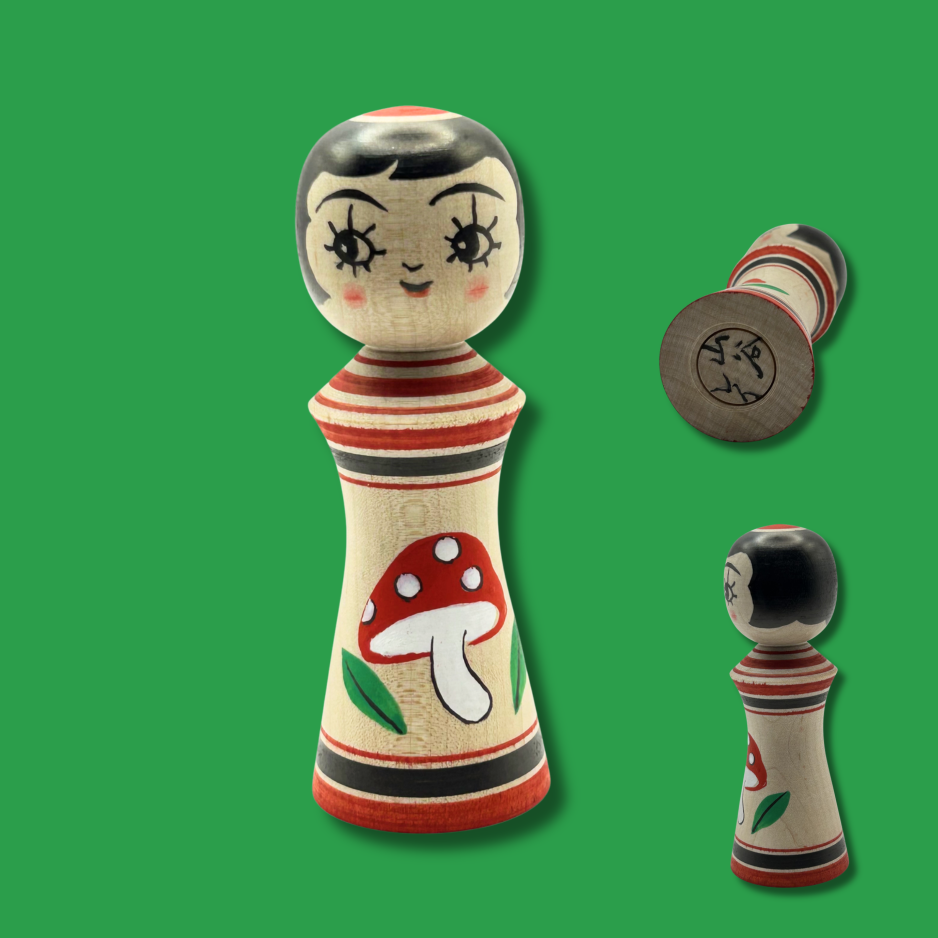 Petite Kokeshi champignon NEUVE signée par Yamaya Rei.