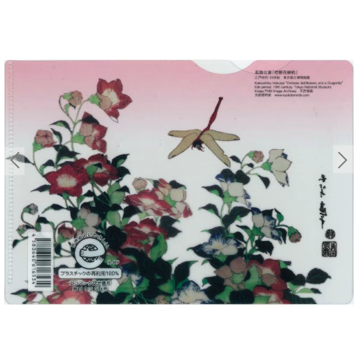 Pochette A6 semi rigide en PP 100% recyclé- « Libellule et campanule » de Katsushika Hokusai
